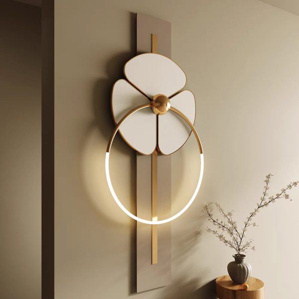 تابلو دیواری دکوراتیو آنیا با جزئیات دقیق و کیفیت بالا ساخته شده است تا یک نمای درخشان و لاکچری به دیوار شما ببخشد. طرح اصلی آن، گل سه پر سفید است که یک حلقه از جنس فلز و نور به زیبایی از آن آویزان شده است.