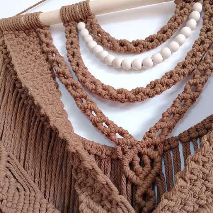 ترکیب بافت دستساز مکرومه و چوب طبیعی، تلفیقی از هنر و طبیعت را به نمایش میگذارد که میتواند نقطهی مرکزی و جذاب دکور منزل یا محل کار شما باشد. حضور این دیوارکوب در هر فضا، جلوهای دلپذیر، گرم و هنری ایجاد میکند و باعث میشود محیطی آرام و دعوتکننده داشته باشید.