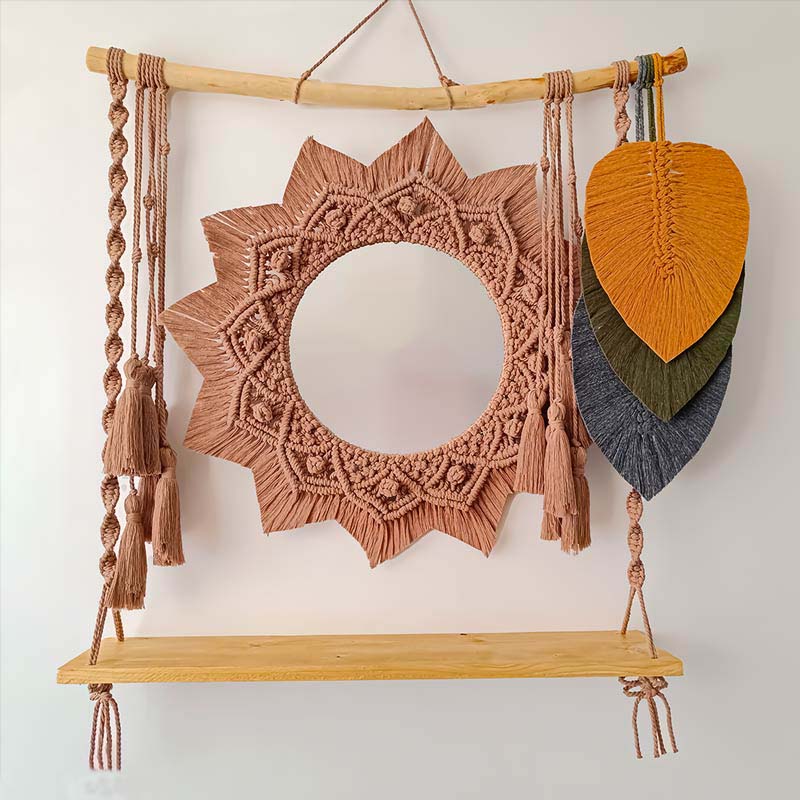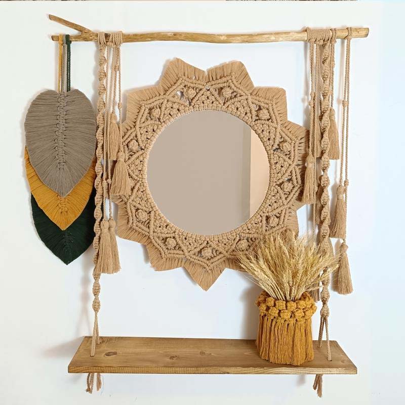 - نقطه کانونی: بافت زیبا و پیچیده مکرومه در اطراف آینه، آن را به یک نقطه کانونی قدرتمند در اتاق نشیمن، اتاق خواب یا ورودی تبدیل میکند.