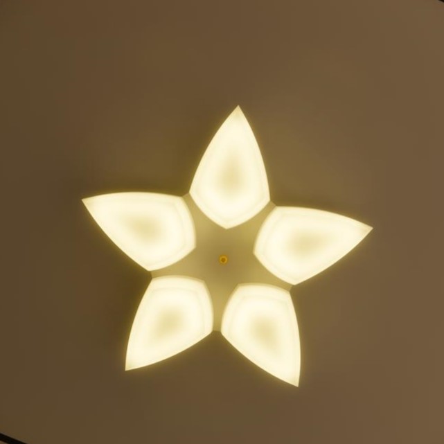 لوستر سقفی مدرن 5 شعله مدل ستاره با طراحی مدرن و دلنشین، نمونهای ایدهآل برای افزودن جلوهای خاص به فضای شماست. این لوستر 5 شعله با توان 30 وات و میزان روشنایی 3000 لومن (در حالت ترکیبی آفتابی و مهتابی)، کاملاً برای روشن کردن فضاهای کوچک مانند اتاقها یا سالنهایی با حداکثر 12 متر مربع مناسب است. ابعاد محصول ۴۸x۴۸x۷ سانتیمتر و وزن 1 کیلوگرم بوده و ارتفاع آن تنها 7 سانتیمتر است. این محصول که در تصویر به شکل یک ستاره نورانی پنجپر بر روی سقف با نور گرم دیده میشود، علاوه بر سادگی، به آسانی بر روی سقف نصب شده و ظاهری مینیمال و شیک به محیط میبخشد.