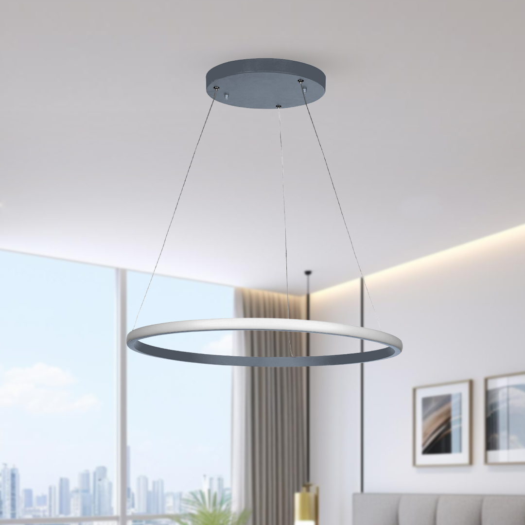 لوستر مدرن تکحلقهای چشمه نور با طراحی مینیمال و ظریف، انتخابی ایدهآل برای دکوراسیونهای مدرن و ساده است. این محصول با ابعاد 50x50x60 سانتیمتر و وزن سبک 550 گرم ساخته شده و به دلیل قابلیت تنظیم ارتفاع، امکان نصب در فضاهای مختلف با اندازههای متفاوت را دارد. بدنهی مستحکم آن از آلومینیوم تولید شده و در رنگهای متنوع مشکی، سفید، طلایی مات و طوسی عرضه میشود تا با هر سبک دکوراسیون داخلی هماهنگ شود.