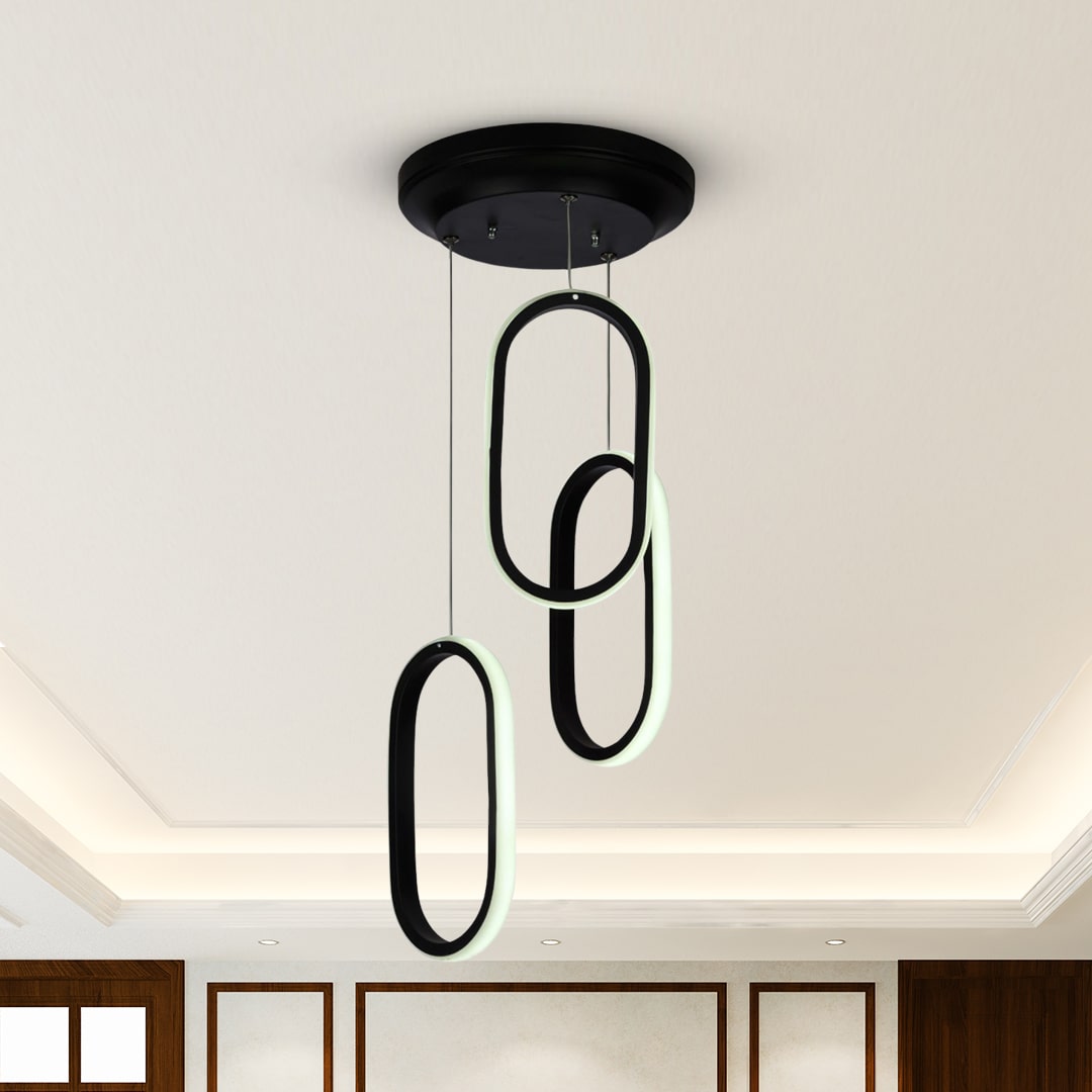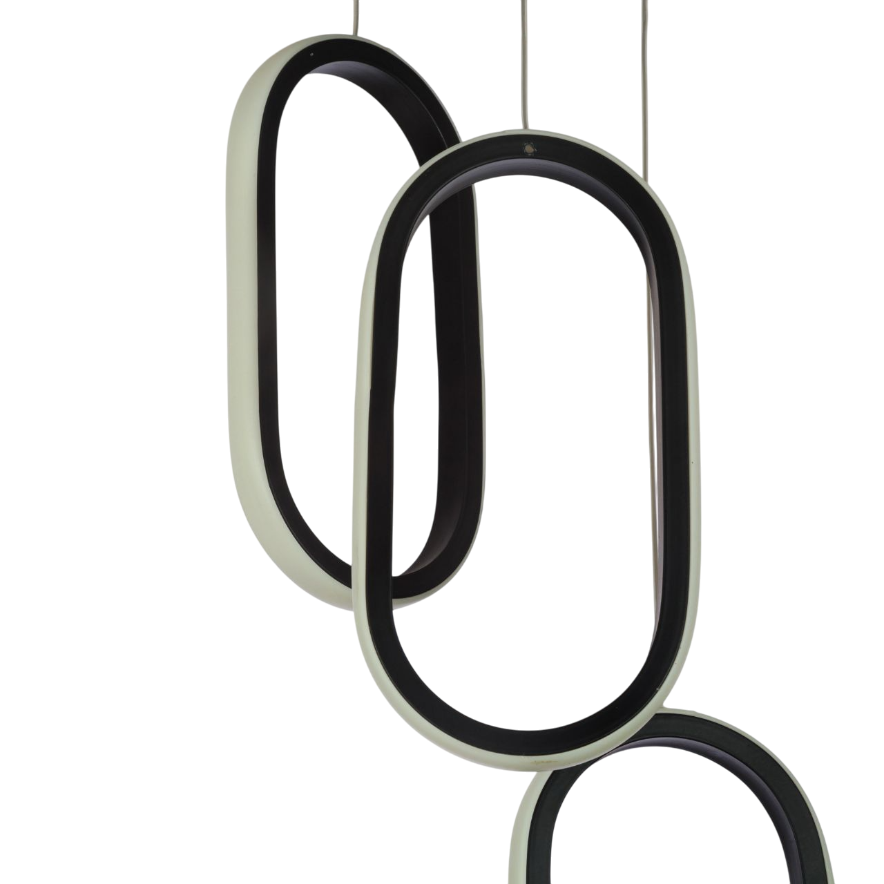 لوستر آویز مدرن 3 شعله چشمه نور با حلقه های مشکی، ترکیبی از طراحی مینیمال و نورپردازی کاربردی است که جلوهای متفاوت به دکوراسیون داخلی شما میبخشد. این لوستر با فرم هندسی بیضی و طراحی مدرن خود، انتخابی ایدهآل برای فضاهای معاصر مانند رستوران، کافیشاپ، آشپزخانه، اتاق خواب، هال و پذیرایی میباشد.