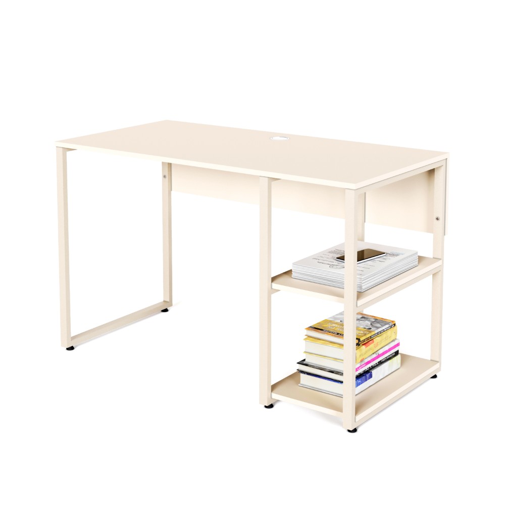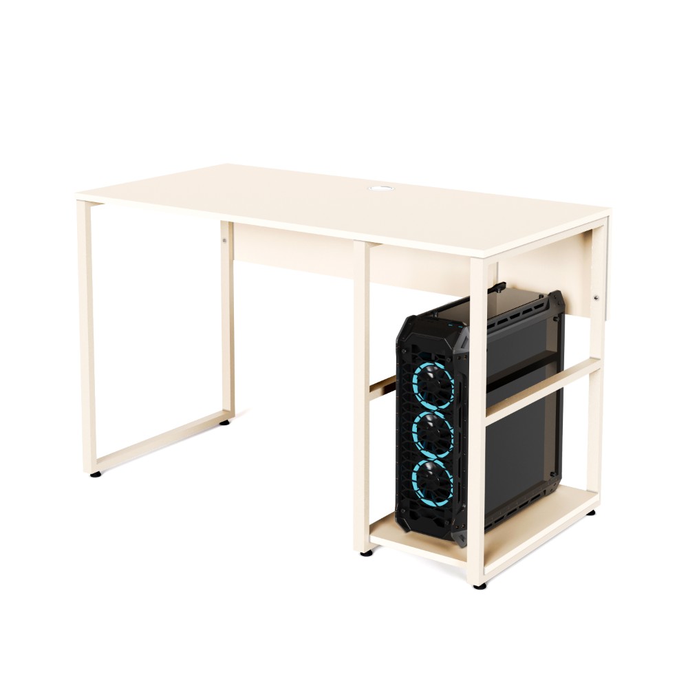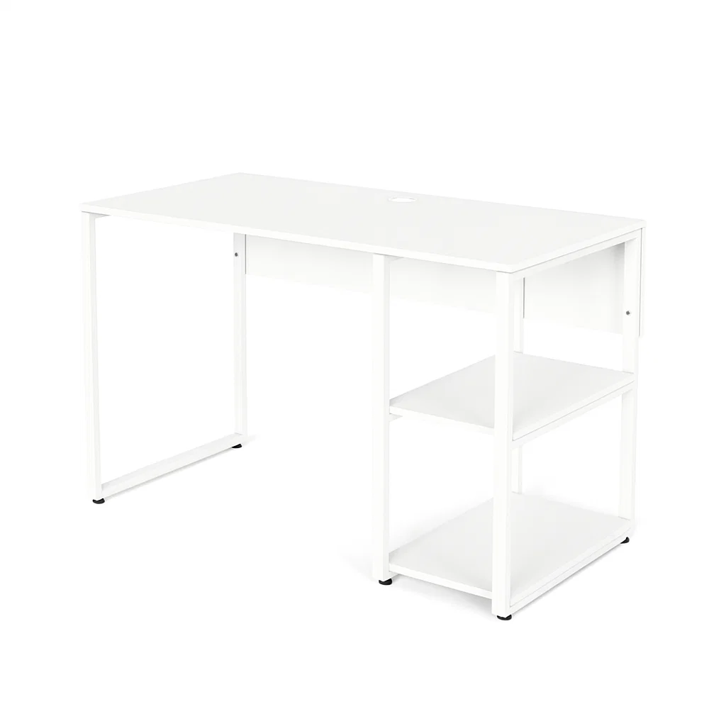 یکی از ویژگیهای برجسته این میز، وجود قفسههای جانبی است که امکان قرار دادن کتاب، لوازم تحریر یا وسایل مورد نیاز روزمره را فراهم میکند. همچنین طبقه میانی قفسهها به صورت قابل جابجایی طراحی شده است، بنابراین میتوانید آن را بردارید و به راحتی از فضا برای قرار دادن کیس کامپیوتر استفاده کنید.