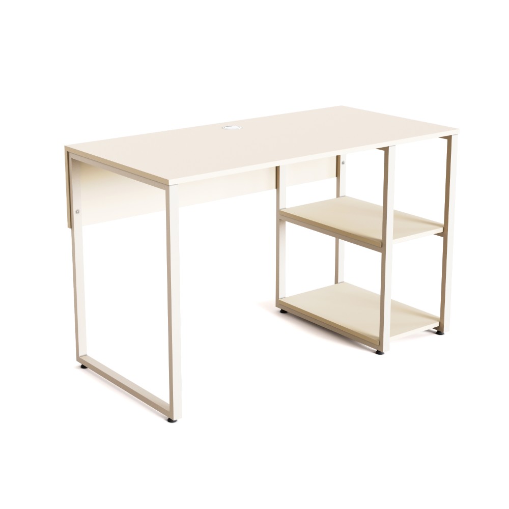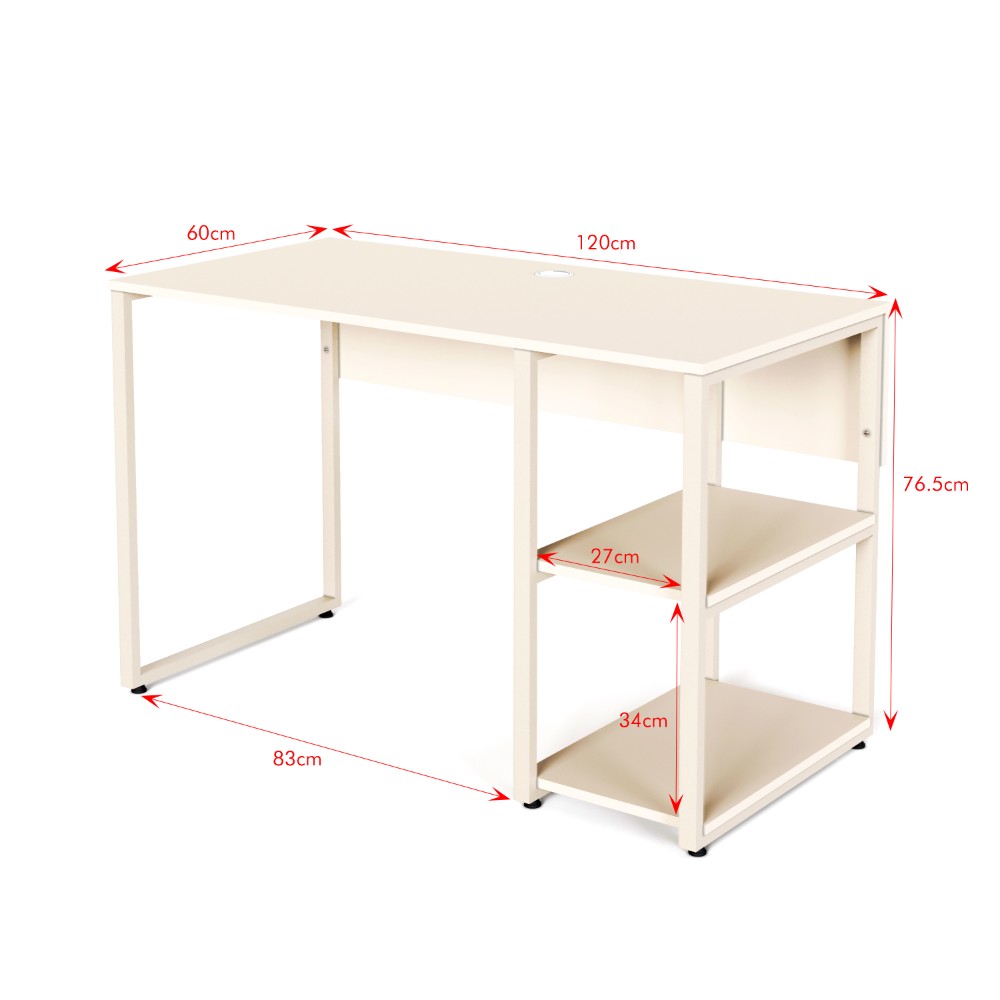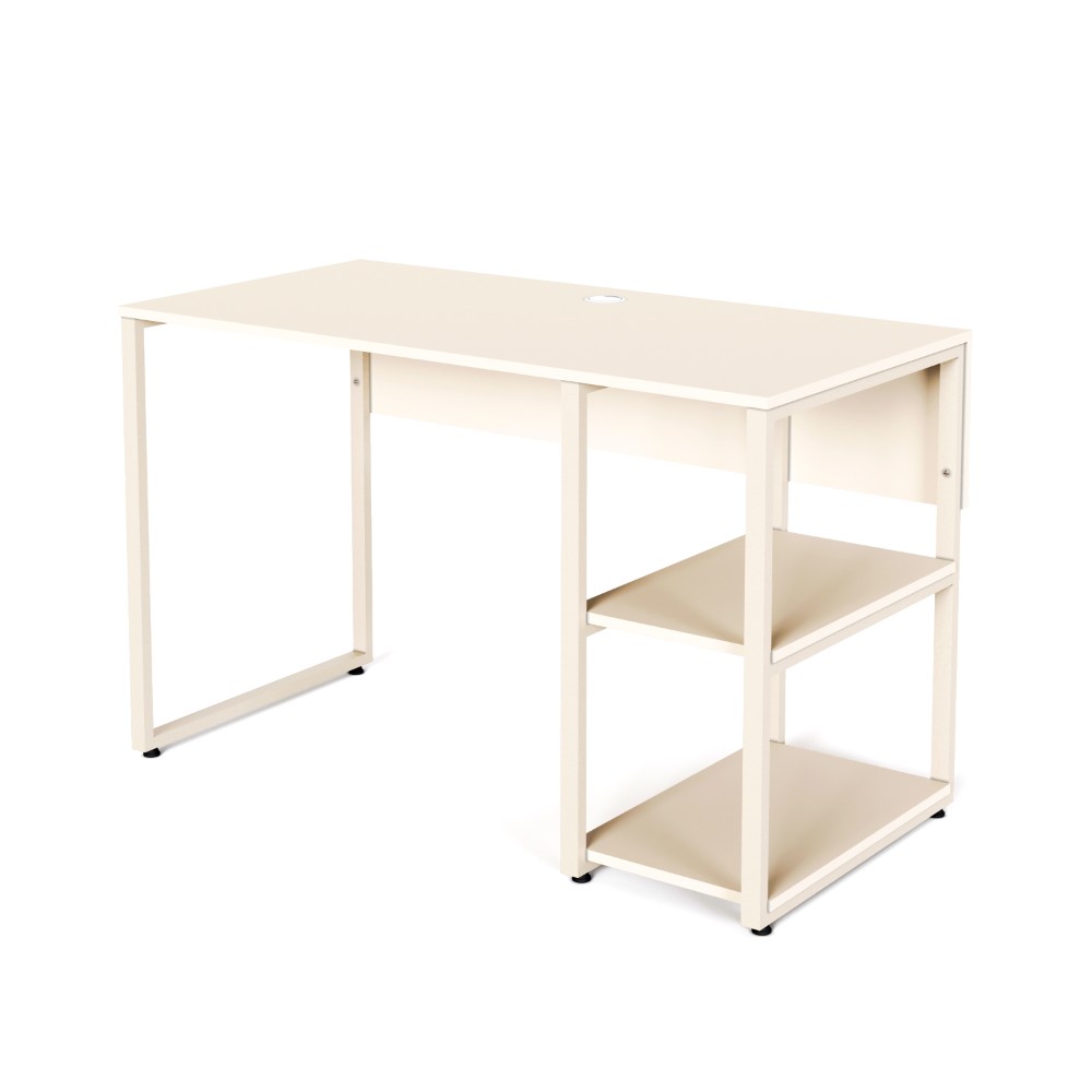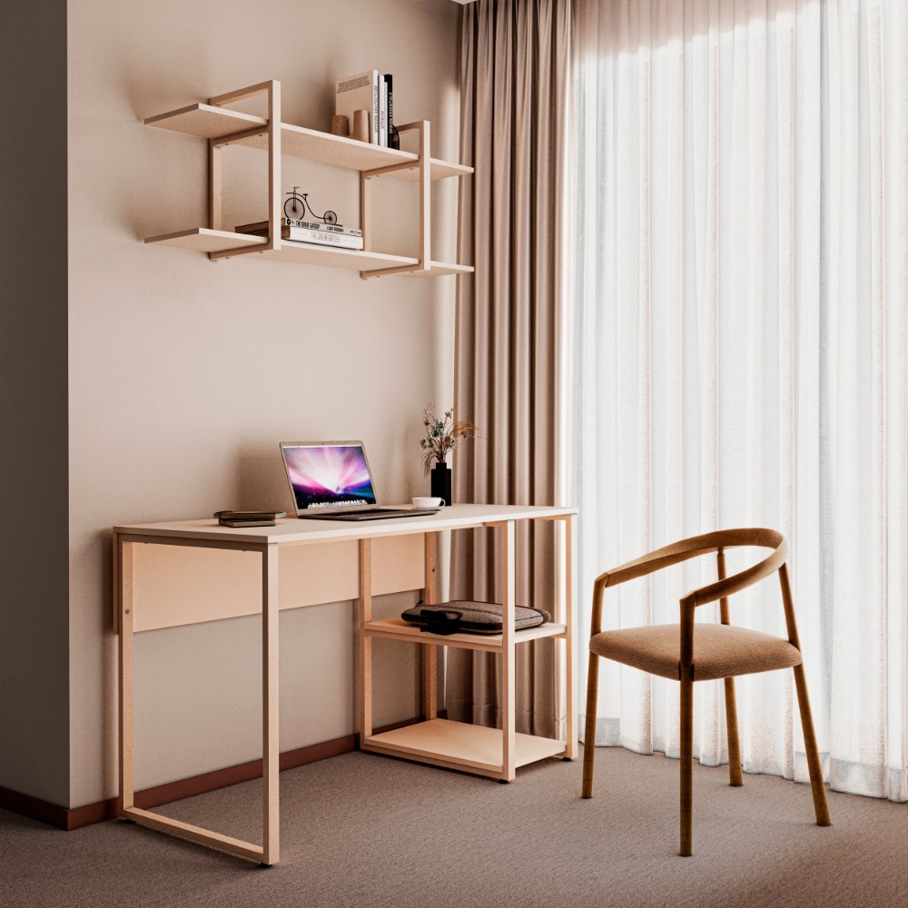 یکی از ویژگیهای برجسته این میز، وجود قفسههای جانبی است که امکان قرار دادن کتاب، لوازم تحریر یا وسایل مورد نیاز روزمره را فراهم میکند. همچنین طبقه میانی قفسهها به صورت قابل جابجایی طراحی شده است، بنابراین میتوانید آن را بردارید و به راحتی از فضا برای قرار دادن کیس کامپیوتر استفاده کنید.