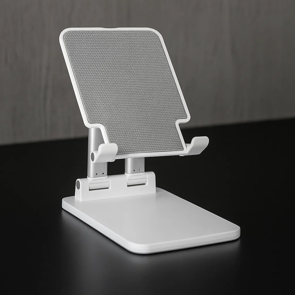 یکی از مزیتهای اصلی این محصول، مکانیزم تاشونده مفصلی آن است که حمل و جابجایی را بسیار آسان میسازد. بهسادگی میتوانید استند را جمع کرده و در کیف یا کوله خود قرار دهید. همچنین طراحی هوشمندانه پایه اجازه میدهد هنگام استفاده، به راحتی شارژر یا هندزفری را به دستگاه متصل کنید.